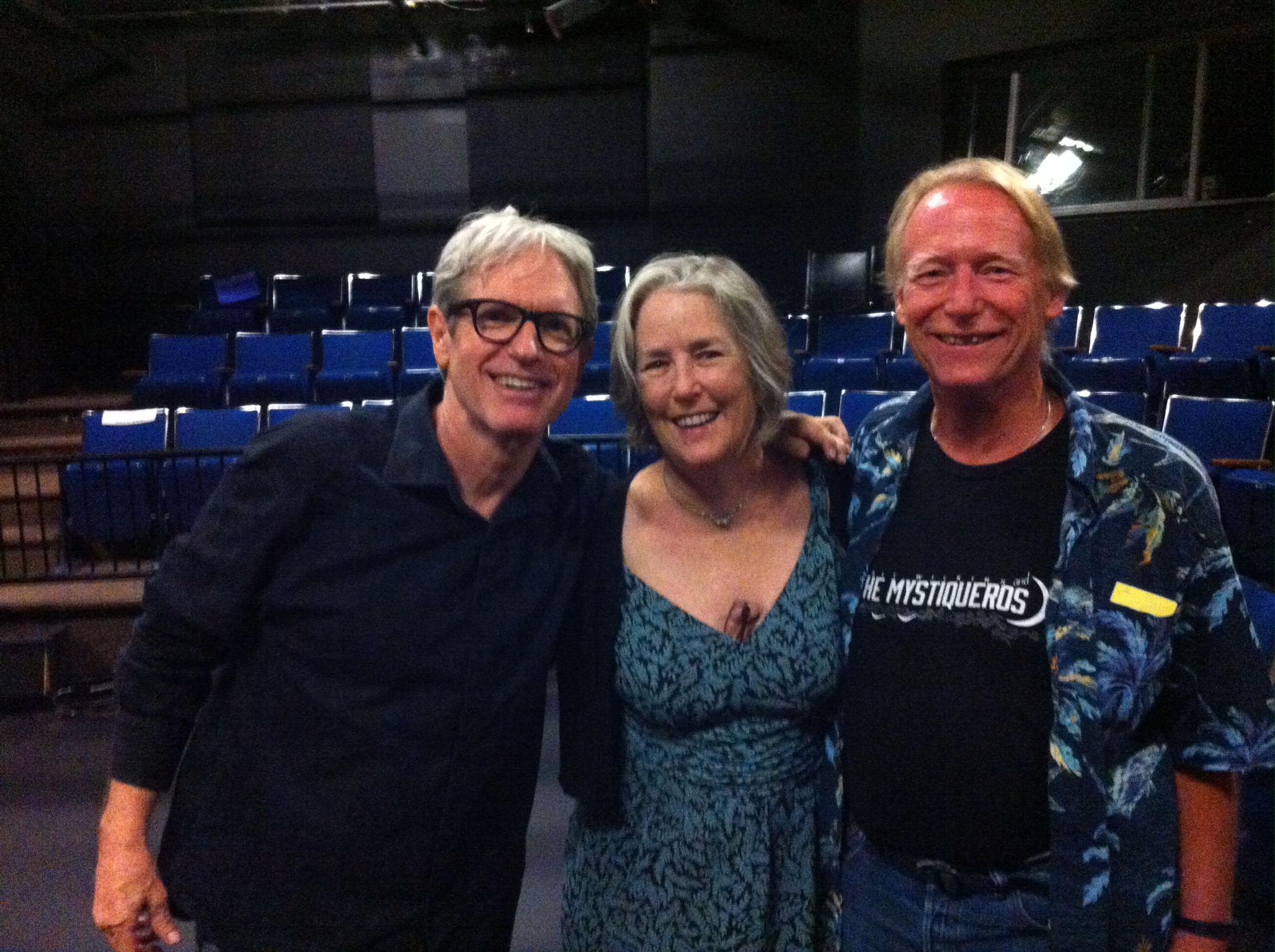 Sam Baker (left) with his friends Penny Edwards and Trey Palmer at the Columbia Center for the Arts Theatre in Hood River, Ore., on Aug. 24, 2014.