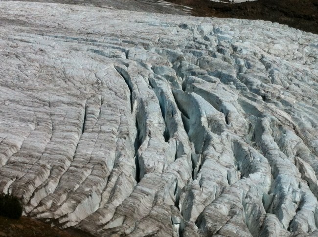 From the edge of the moraine, the Railroad Grade Trail becomes an exhilarating high-wire hike as you make a steady ascent on the approach to the mighty Easton Glacier.