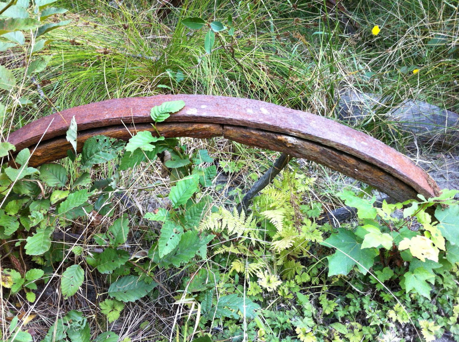 We also found an old set of wooden wagon wheels still covered by rusty flat steel tires, no doubt dating back to the time before the land was flooded by the dam. The relics remain undisturbed, and souvenir hunting is tacky and illegal.
