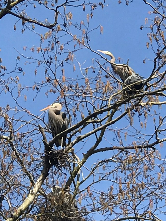 It’s nesting season for the great blue herons at the locks in Seattle’s Ballard neighborhood, a ritual that is carrying on uninterrupted during the Covid-19 pandemic. March is a good time to see the gangly birds prepping for the arrival of their spring hatchlings. The …